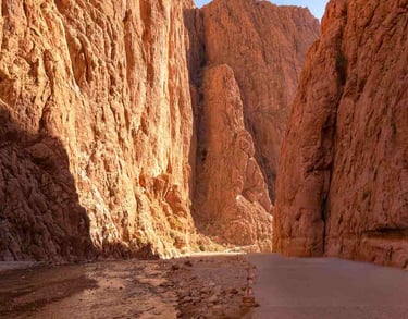 A pochi chilometri da Ouarzazate si trovano le famose Gole del Dades e le Gole del Todra, due canyon spettacolari scavati dal tempo e dagli agenti atmosferici. Le Gole del Dades, chiamate anche "Valle delle Rose" per la presenza di roseti che sbocciano in primavera, offrono paesaggi desertici suggestivi. Le Gole del Todra, invece, sono caratterizzate da pareti rocciose alte e strette, creando un effetto scenografico unico. Entrambe le gole sono perfette per trekking ed escursioni.
