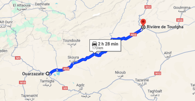 Le Gole del Todra si trovano a circa 150 chilometri a est di Ouarzazate. È possibile raggiungerle in auto, in autobus o con un taxi condiviso da Ouarzazate o da altre città vicine. Consultare una mappa del Marocco (Gole del Todra Marocco Mappa) per pianificare il vostro viaggio.